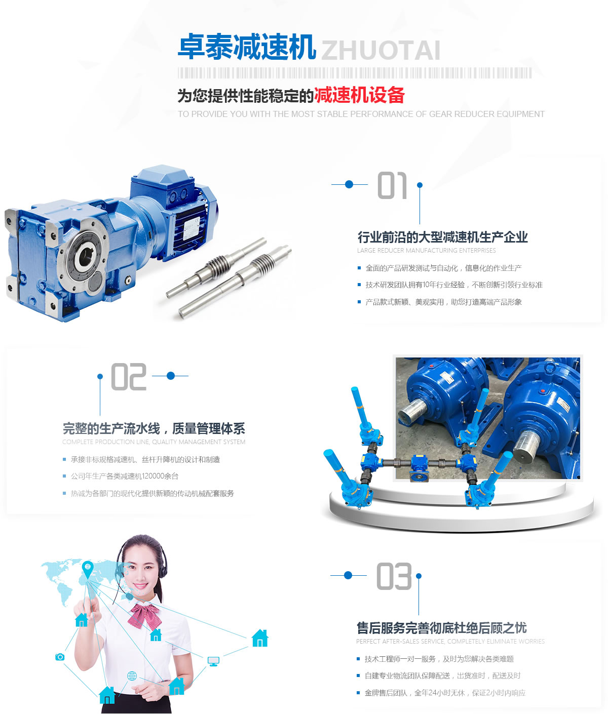 寰峰窞鍗撴嘲鍑忛熸満鏈夐檺鍏徃鏄崕鍖楀湴鍖虹殑鐢熶駭鍑忛熸満鐨勪笓涓氬叕鍙革紝浼佷笟鍗犲湴闈㈢Н涓や竾浣欏鉤鏂圭背錛屽凡鏈夎繎浜屽崄騫寸敓浜у埗閫犵粡楠屻備富瑕佺敓浜х粡钀ワ細WH銆丠W銆丆W銆丼CW銆乄S銆乄D銆乄XJ銆乄SJ緋誨垪鍦嗗姬榻匡紙鏅氾級鍦嗘煴铚楄疆铚楁潌鍑忛熸満錛汿PS銆乀PU銆乀PA緋誨垪騫抽潰浜屾鍖呯粶铚楄疆鍑忛熸満錛沊銆丅緋誨垪鎽嗙嚎閽堣疆鍑忛熸満錛汼WL緋誨垪铚楁潌涓濇潬鍗囬檷鏈猴紱澶у瀷鍠風亴璁懼涓撶敤鍑忛熸満錛涚數鐐変笓鐢ㄥ噺閫熸満絳夈傝繕鍙壙鎺ュ悇縐嶉潪鏍囧噺閫熸満鍙婇厤浠剁殑璁捐鍔犲伐銆傚崜娉版満姊板緇堝潥鎸佲滆川閲忕涓錛屽鎴蜂負鏈濈殑鎬濇兂銆備粠涓嶆澗鎳堝湪浜у搧璐ㄩ噺涓婄殑瑕佹眰錛屽浜庢瘡涓浠朵駭鍝侀兘緇忚繃璁ょ湡鐨勮川閲忔妸鍏籌紝紜繚瀹㈡埛鐨勬弧鎰忎綑璁ゅ彲銆備笉鏂姞澶у璐ㄩ噺鐨勬姇鍏ワ紝鏄痙宸炲崜娉板噺閫熸満鏈夐檺鍏徃鑾峰緱楂樿川閲忎駭鍝佺殑閲嶈淇濊瘉銆? 寰峰窞鍗撴嘲鍑忛熸満鏈夐檺鍏徃浠ョ敤蹇冪粡钀ャ佸畬緹庢妧鏈拰鏁笟綺劇錛岃嚧鍔涗簬涓烘偍鎻愪緵鐪熻瘹鏈嶅姟鍜屾洿鍚堢悊鐨勬暣濂楄В鍐蟲柟妗?....